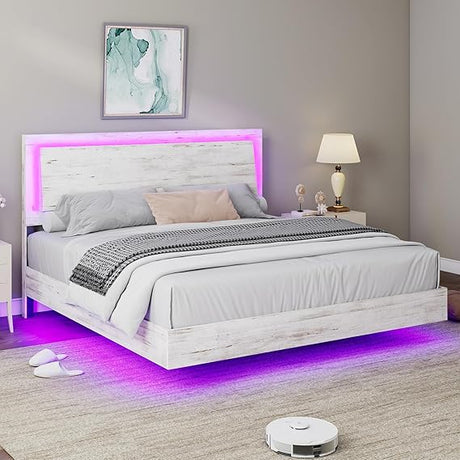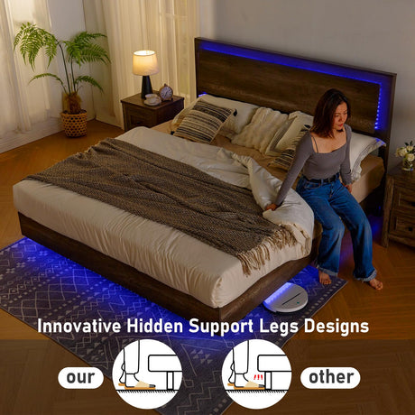 Precio normal Desde $948.99 USDPrecio unitario /AgotadoDisponiblesKing Size Floating Platform Bed Frame with LED Light and Headboard