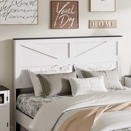 Precio normal Desde $187.99 USDPrecio unitario /AgotadoDisponiblesQueen Size Farmhouse Wooden Bed Frame with Headboard - White