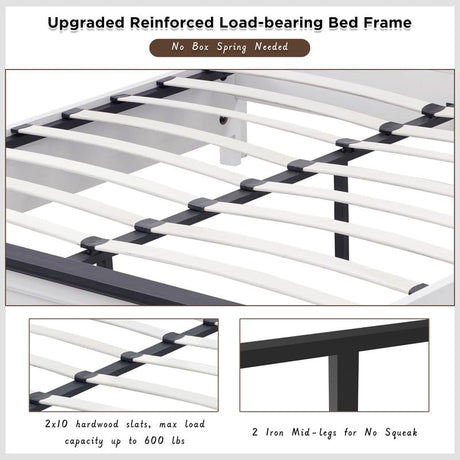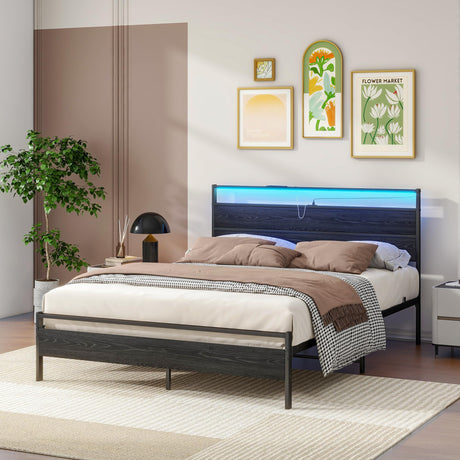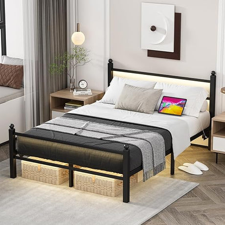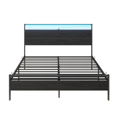 Precio normal Desde $327.99 USDPrecio unitario /AgotadoDisponiblesQueen Metal Platform Bed Frame with LED Headboard & USB Charging