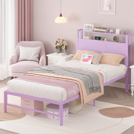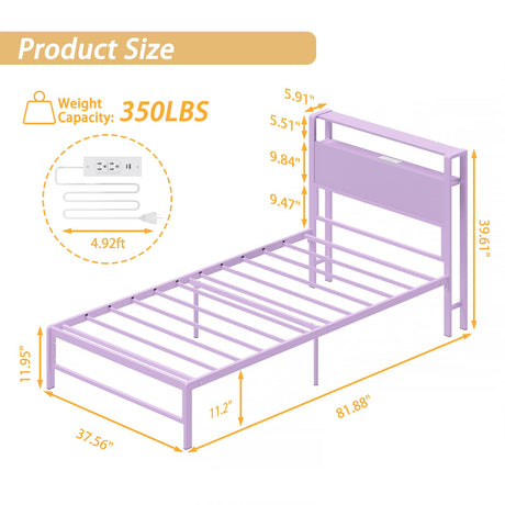 Precio normal Desde $181.99 USDPrecio unitario /AgotadoDisponiblesTwin Bed Frame with Charging Station & Storage Headboard - Purple