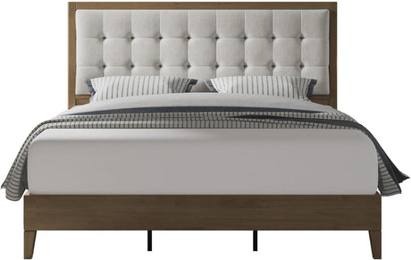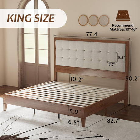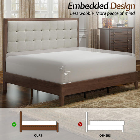 Precio normal Desde $657.99 USDPrecio unitario /AgotadoDisponiblesBeige Upholstered Queen Bed Frame with Platform & Wood Slats