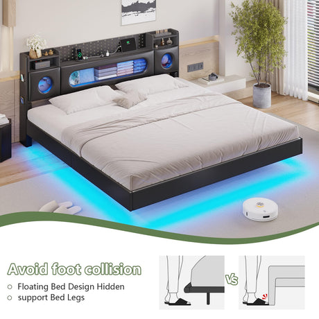 Precio normal Desde $430.99 USDPrecio unitario /AgotadoDisponiblesKing Floating Bed Frame with LED Lights & Storage Headboard