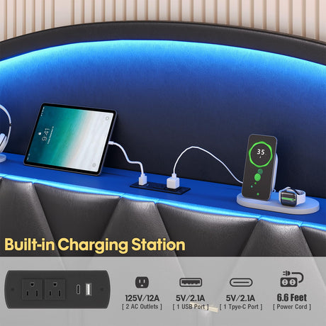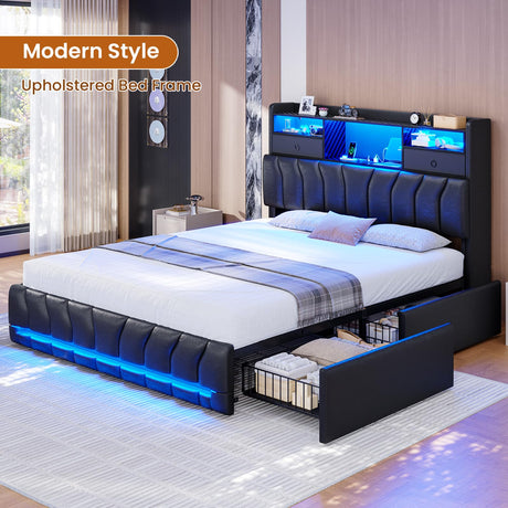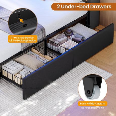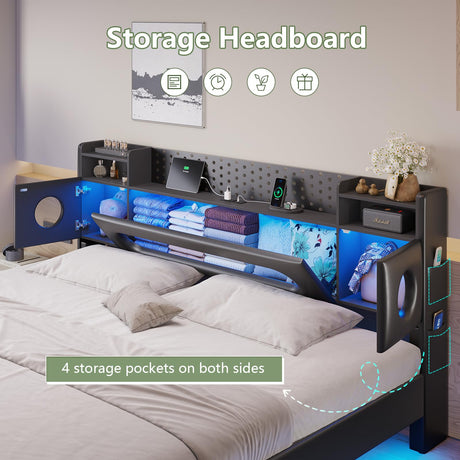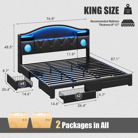 Precio normal $321.99 USDPrecio unitario /AgotadoDisponiblesKing Size Bed Frame with 6 Storage Drawers and LED Headboard