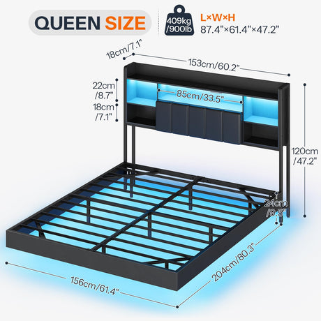 Precio normal $178.99 USDPrecio unitario /AgotadoDisponiblesQueen Floating Bed Frame with Charging Station & RGB LED Lights