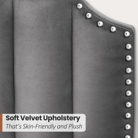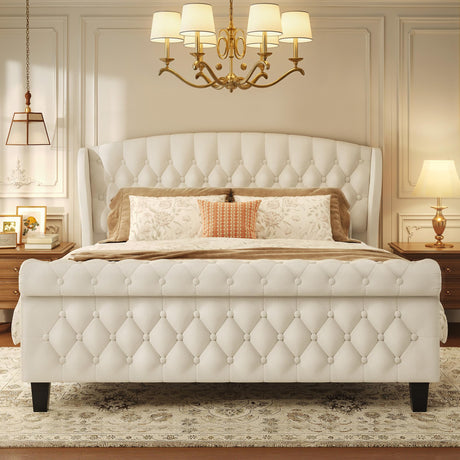 Precio normal $124.99 USDPrecio unitario /AgotadoDisponiblesQueen Velvet Upholstered Sleigh Bed Frame with Wingback Headboard