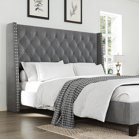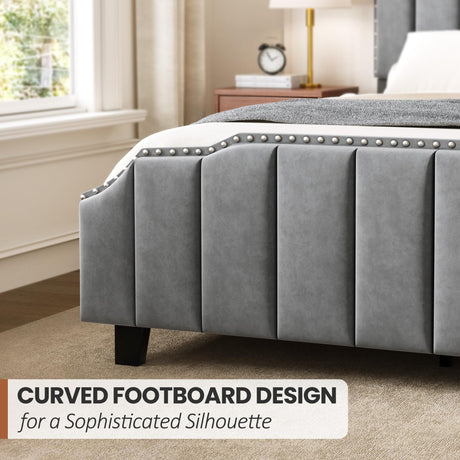Queen Velvet Platform Bed Frame with Upholstered Headboard