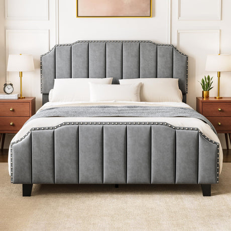 Precio normal Desde $259.99 USDPrecio unitario /AgotadoDisponiblesGrey Queen Upholstered Platform Bed Frame with Tall Tufted Headboard