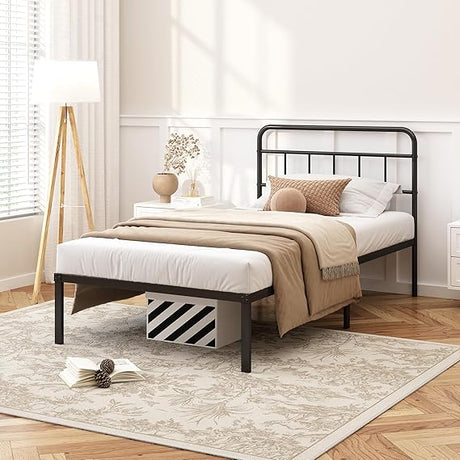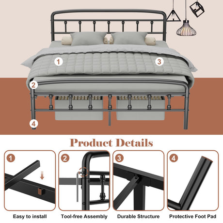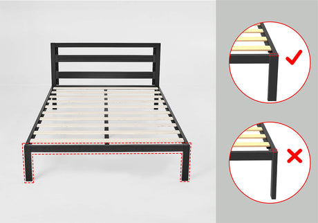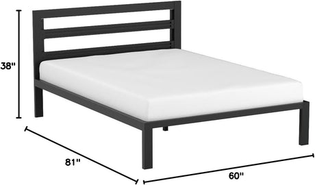 Industrial Metal Bed Frame with Headboard - Queen, Black