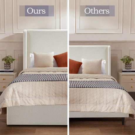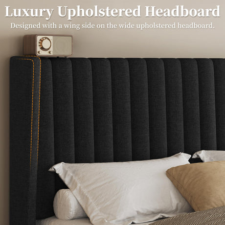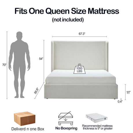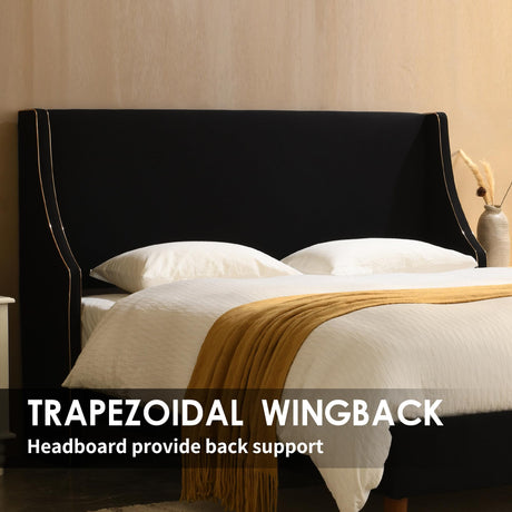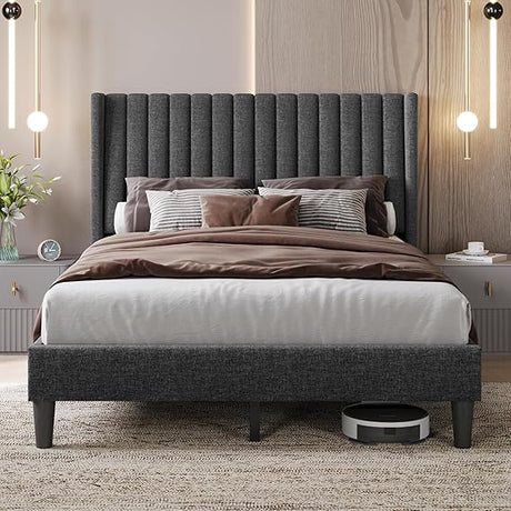 54" Wingback Queen Bed Frame - Upholstered Platform Bed with Tall Headboard