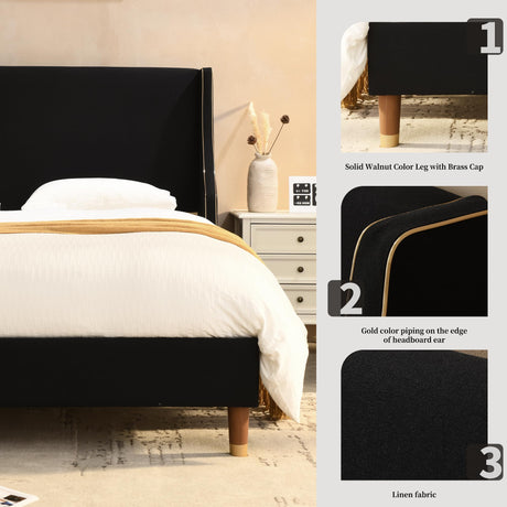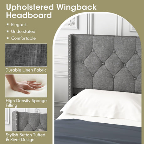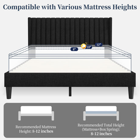 Queen Upholstered Platform Bed Frame with Wingback Headboard