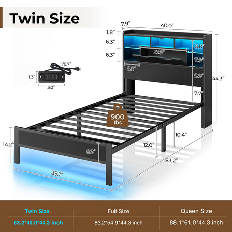 Precio normal $521.99 USDPrecio unitario /AgotadoDisponiblesTwin Bed Frame with LED Headboard and Charging Station