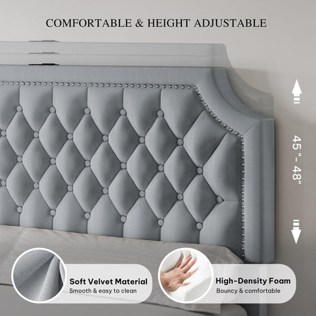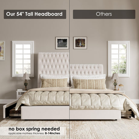 Queen Upholstered Bed Frame with Storage - 54" Tufted Headboard