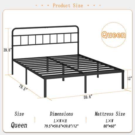 Precio normal Desde $232.99 USDPrecio unitario /AgotadoDisponibles12-Inch Queen Bed Frame with Minimalist Headboard - Black Metal Platform