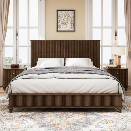 King Size Platform Bed Frame with Headboard - Walnut Finish