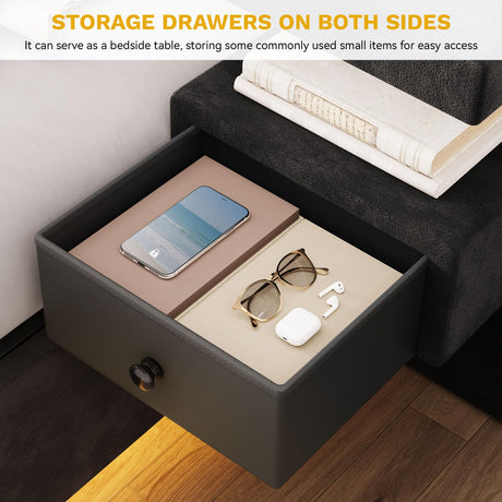 Precio normal Desde $124.99 USDPrecio unitario /AgotadoDisponiblesQueen Bed Frame with Storage Drawers and LED Headboard