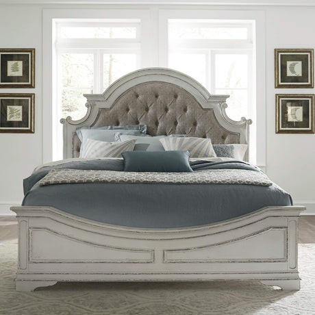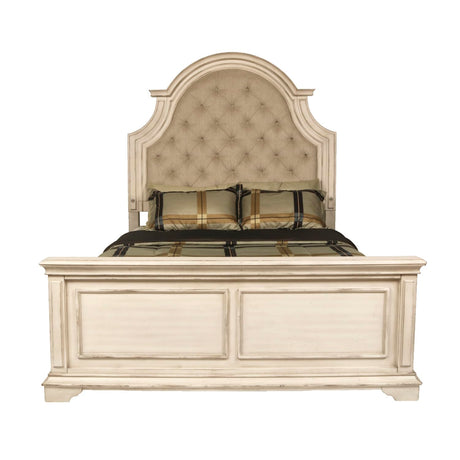 Magnolia Manor King Upholstered Bed - Antique White Tufted Chenille