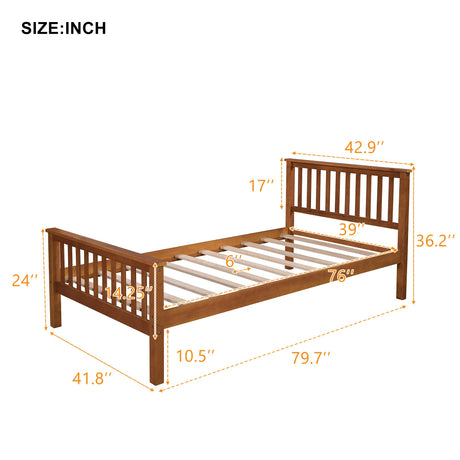 Twin Bed Frame with Headboard and Footboard - Oak Wood Platform