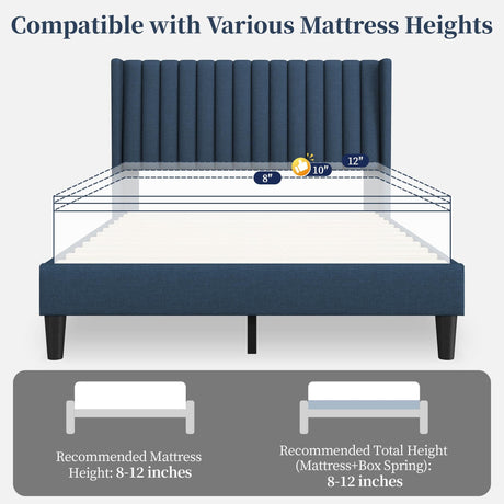 Full Size Upholstered Platform Bed Frame with Tufted Wingback Headboard
