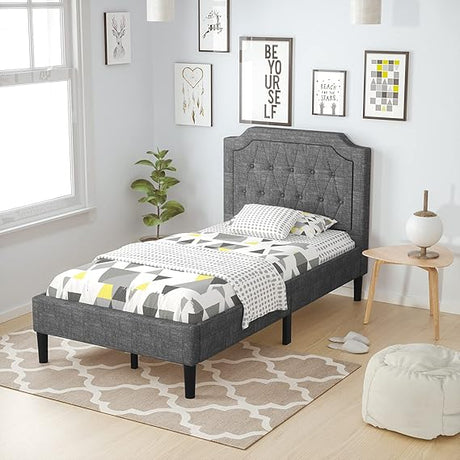 Twin Upholstered Bed Frame with Button-Tufted Headboard - Grey