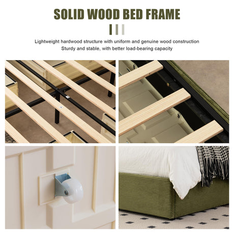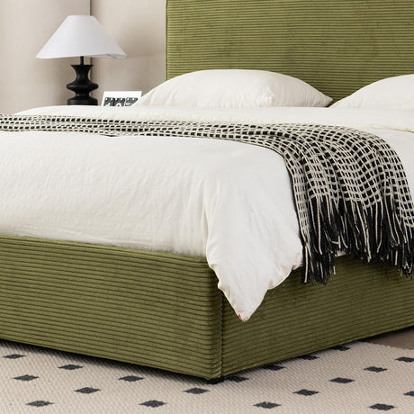 King Size Corduroy Upholstered Platform Bed Frame with 51" Wingback Headboard
