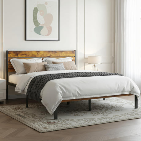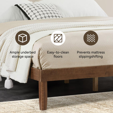 Mid-Century Wood Platform Bed Frame with Solid Wood Foundation - Full Size