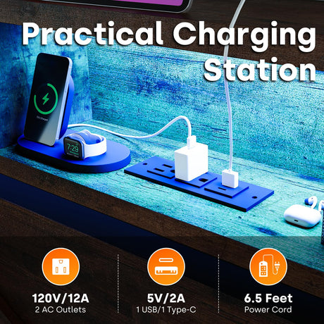 Farmhouse Queen Bed Frame with Storage Headboard and LED Lights