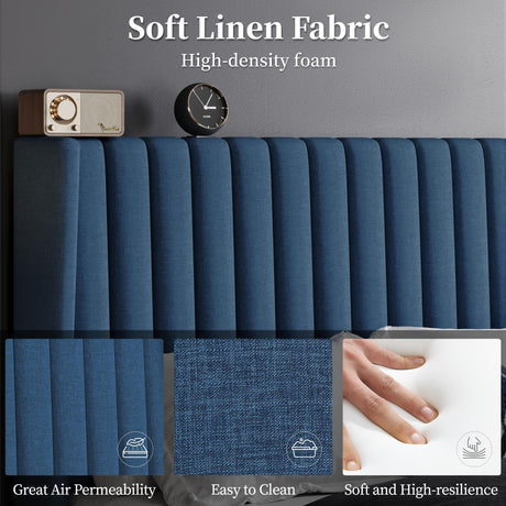 Full Size Upholstered Platform Bed Frame with Wave Fabric Headboard
