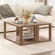 • The farmhouse coffee table with storage shelves and four legs of this accent table are all made of high-quality artificial timber with a realistic original wood texture. It is not only durable and wear-resistant but also environmentally friendly.