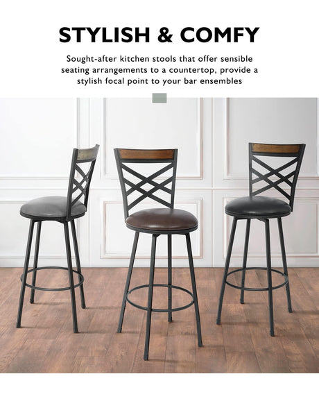 New Brown Swivel Bar Stools Set of 2, Adjustable Seat Height Bar Stools