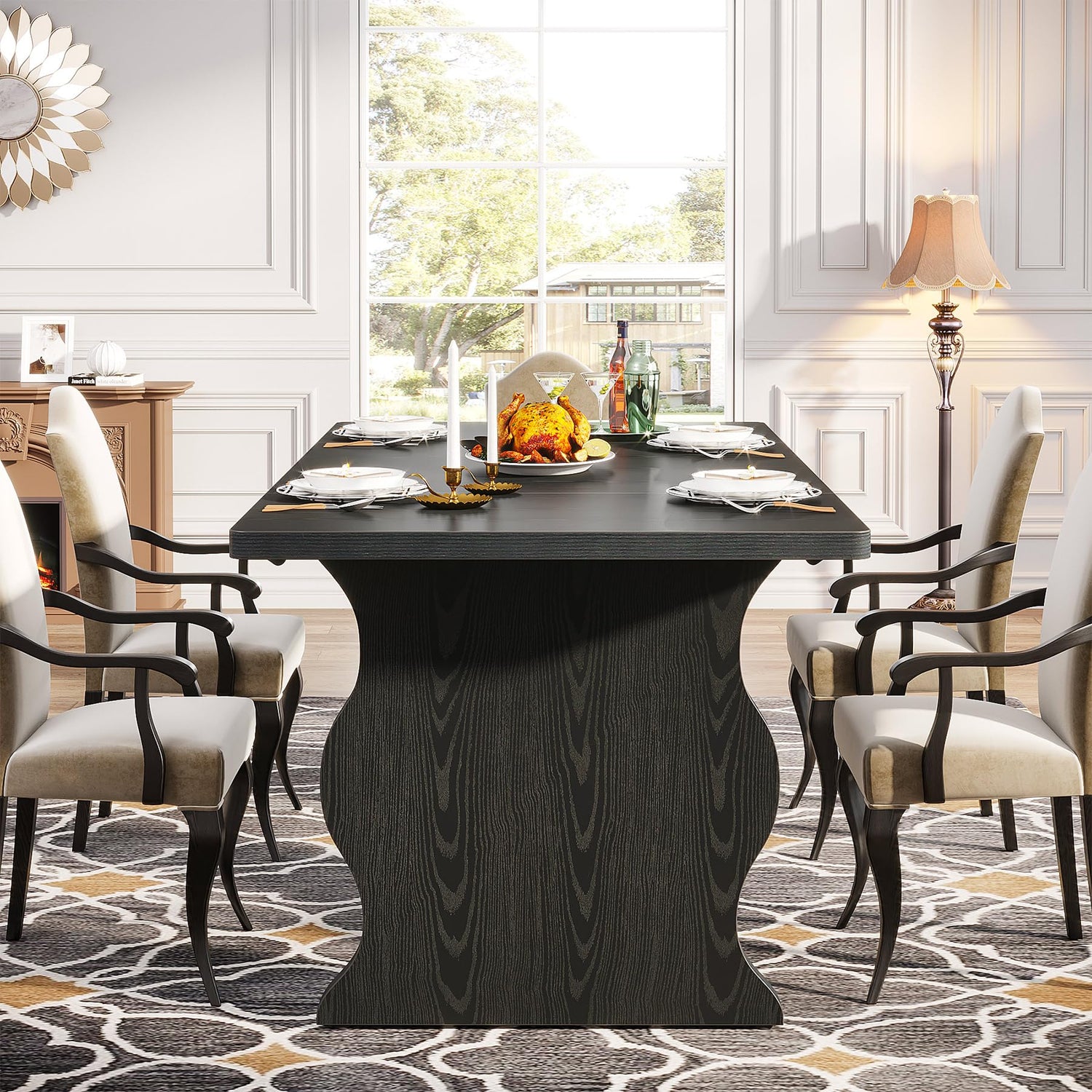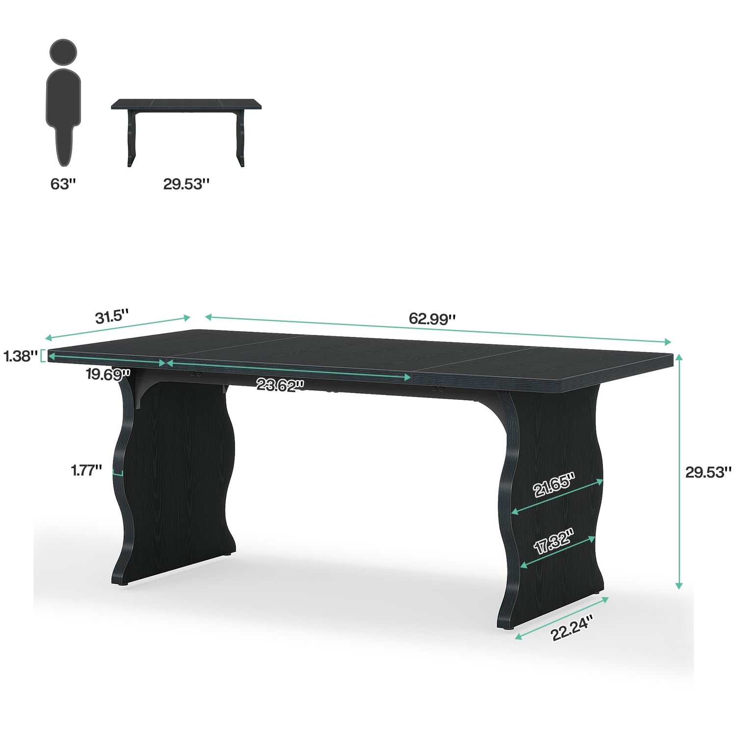 This dining table features a robust build quality with a sleek black finish that complements any décor style—from modern minimalist to rustic farmhouse. The spacious 63-inch surface provides ample room for dining, entertaining, or working from home.