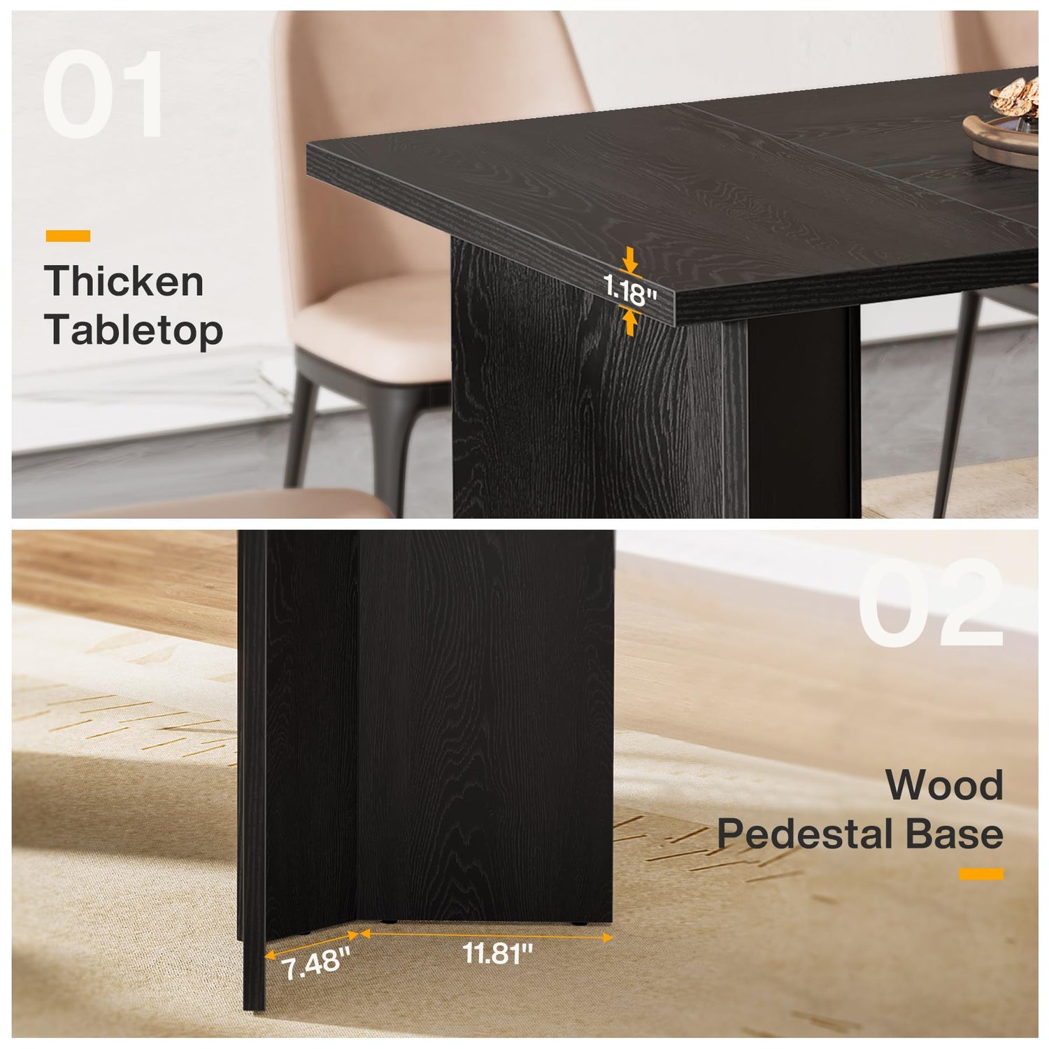 Elevate your dining space with this sophisticated 63-inch dining table that seamlessly blends contemporary design with exceptional functionality. Crafted with a thickened wood base and sleek black finish, this rectangular table creates an inviting centerpiece for memorable meals and gatherings.