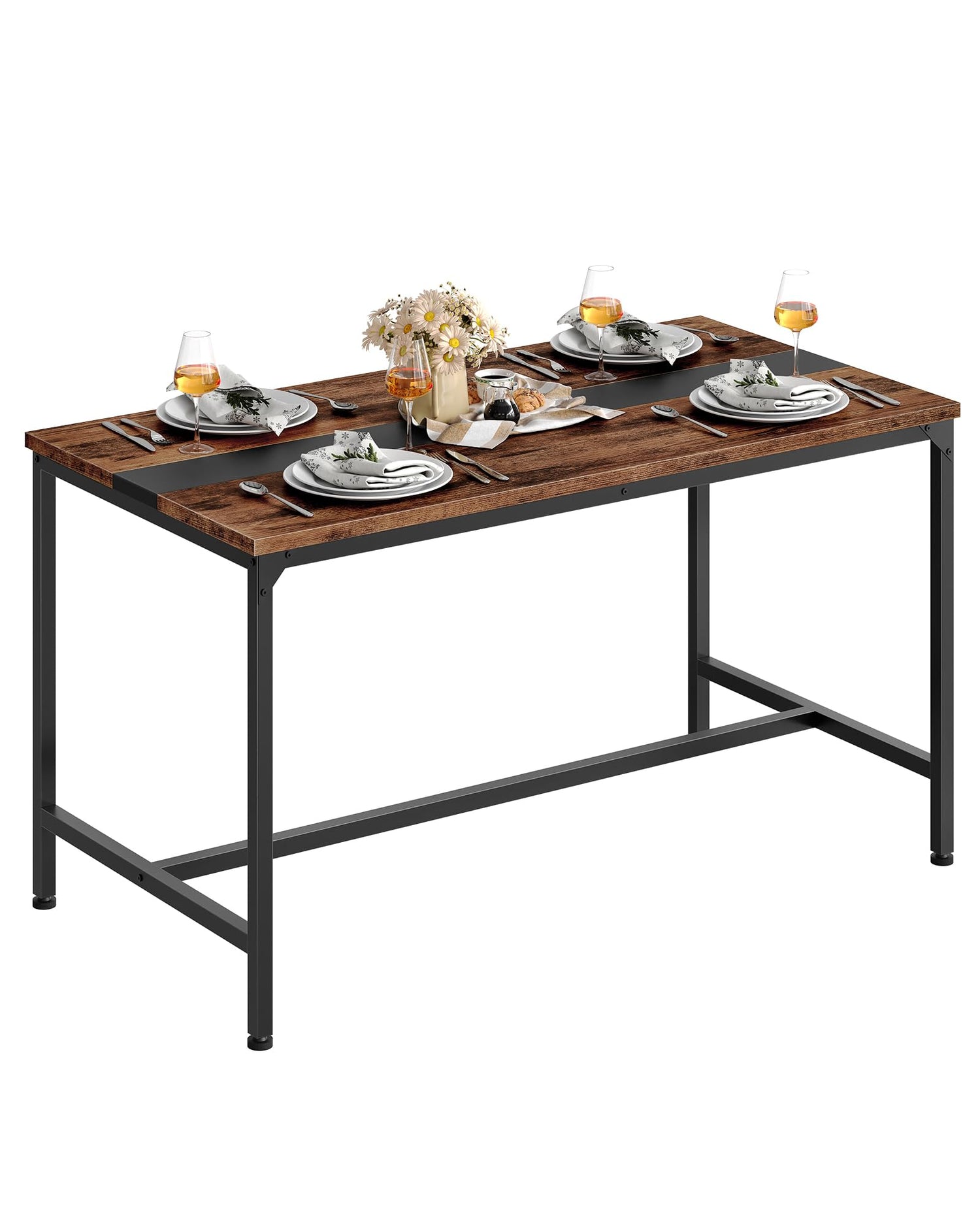 Elevate your dining space with this striking rectangle dining table that seamlessly blends rustic warmth with modern industrial design. The distinctive color-blocked aesthetic features rich rustic brown paired with sleek black accents, creating a versatile centerpiece that complements any interior style.