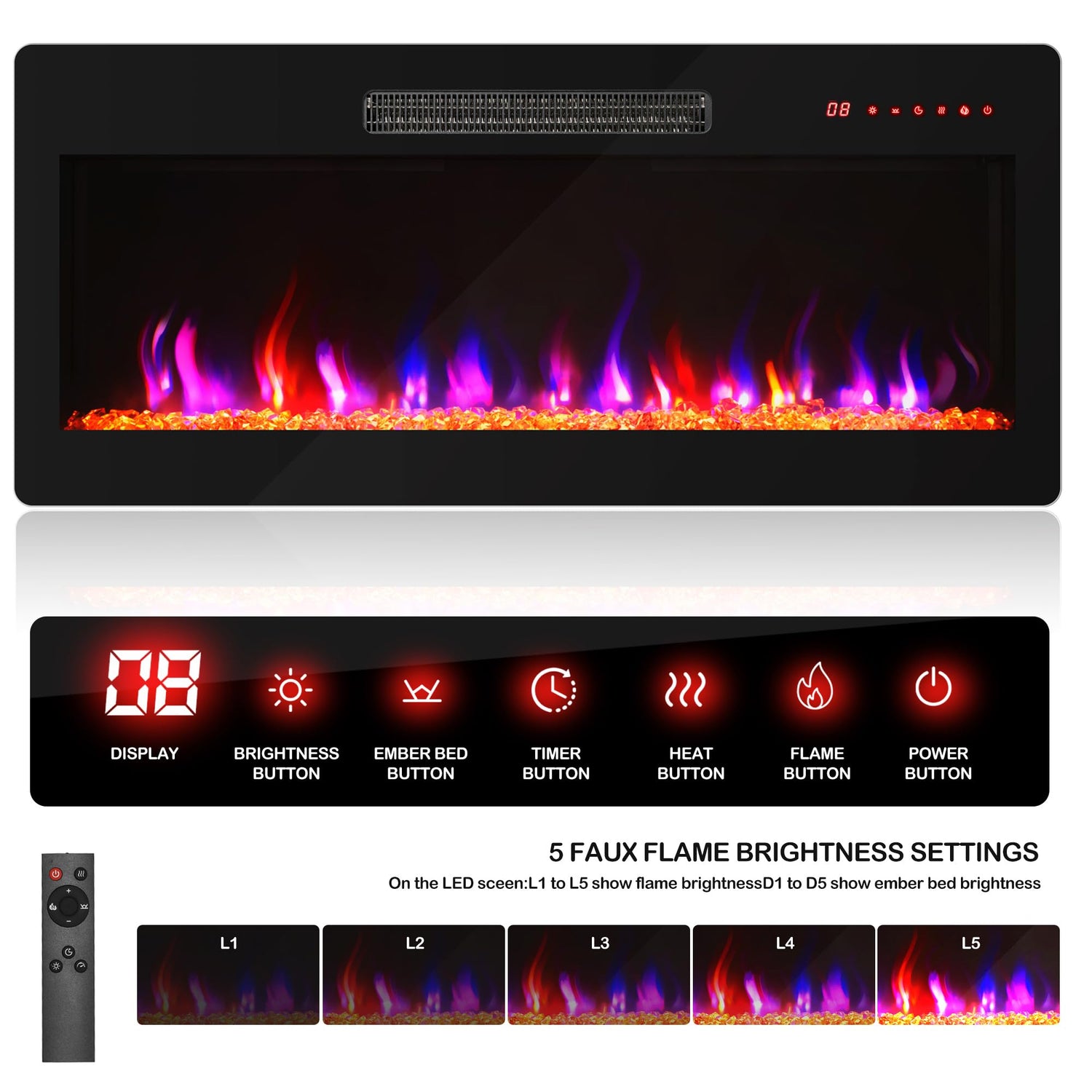 | Flame Effect | Adjustable LED flame technology |