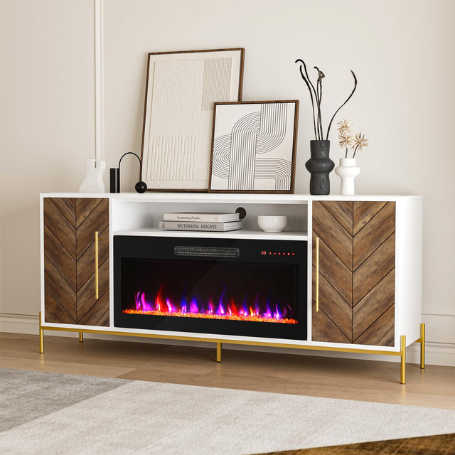 Transform your living space with this elegant 68-inch entertainment center that seamlessly combines functionality with ambiance. Featuring an integrated 36-inch electric fireplace, this console delivers both warmth and visual appeal while accommodating TVs up to 75 inches.