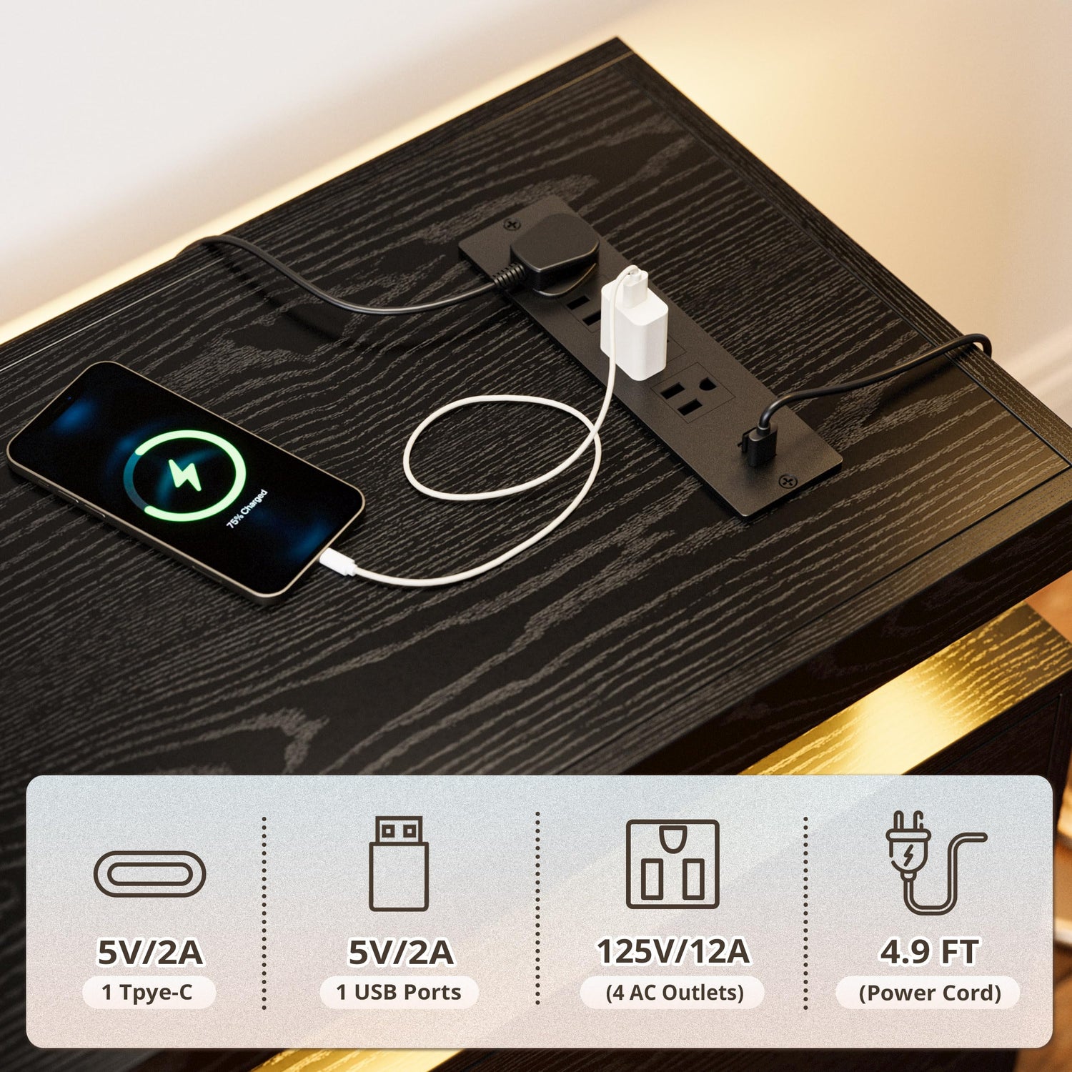 75 Inch TV Stand with LED Lights and Power Outlets