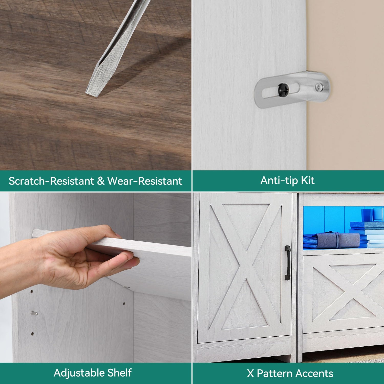 Farmhouse TV Stand for 65" TVs with LED Lights & Storage
