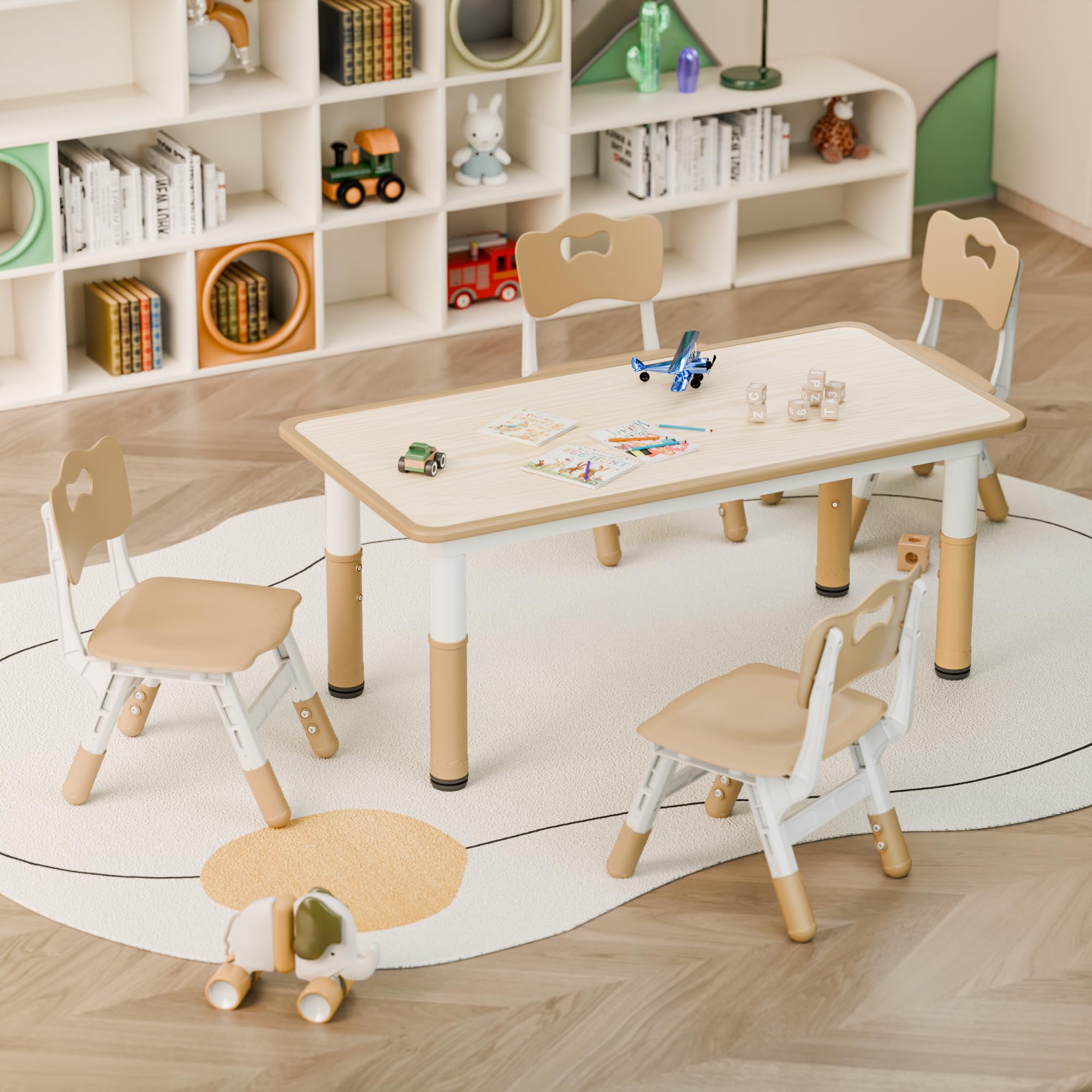 48 Inch Table and 4 Chairs Set, Kid Table and Chairs Set, Toddler Table and Chair Set, Height Adjustable, Multi-Activity Table, Graffiti Desktop, Classroom, Daycare, Home, Beige