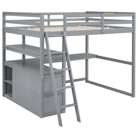 Twin Size L-Shaped Loft Bed with 2 Built-in Desks