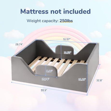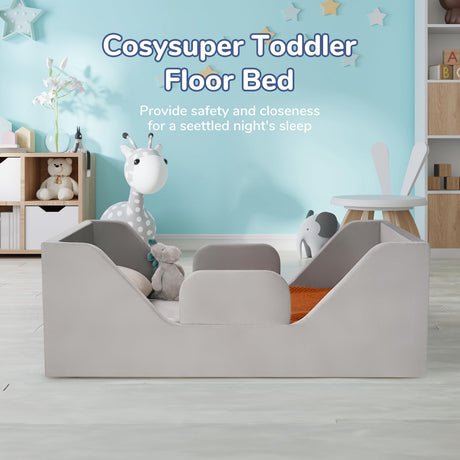 Toddler Bed Frame, Toddler Floor Bed with Removable Safety Rails