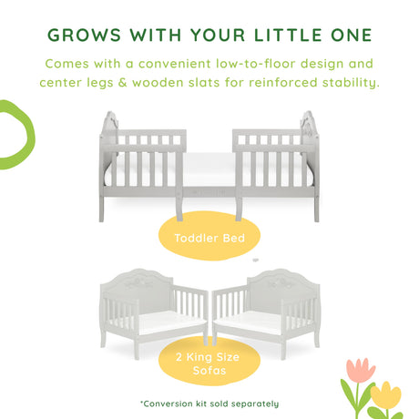 Rose 3-in-1 Convertible Toddler Bed in Platinum, Greenguard Gold Certified