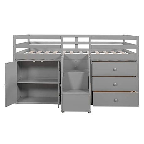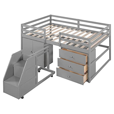 Designs Full Size Loft Bed with Stairs and Storage Drawers