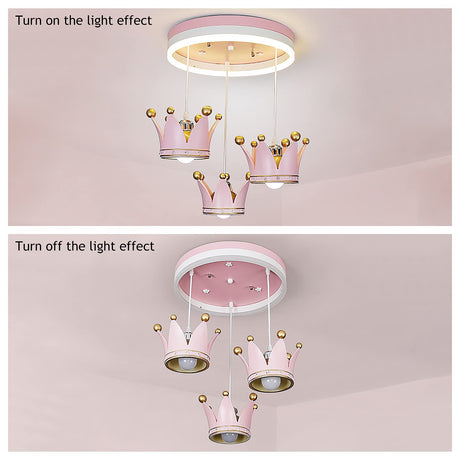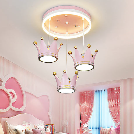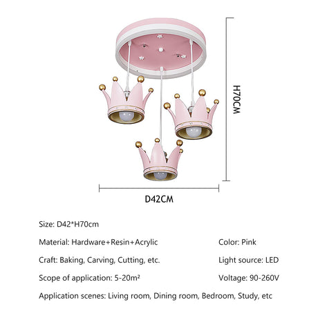 Pink Crown Chandelier for Kids Room - Modern Princess Pendant Light