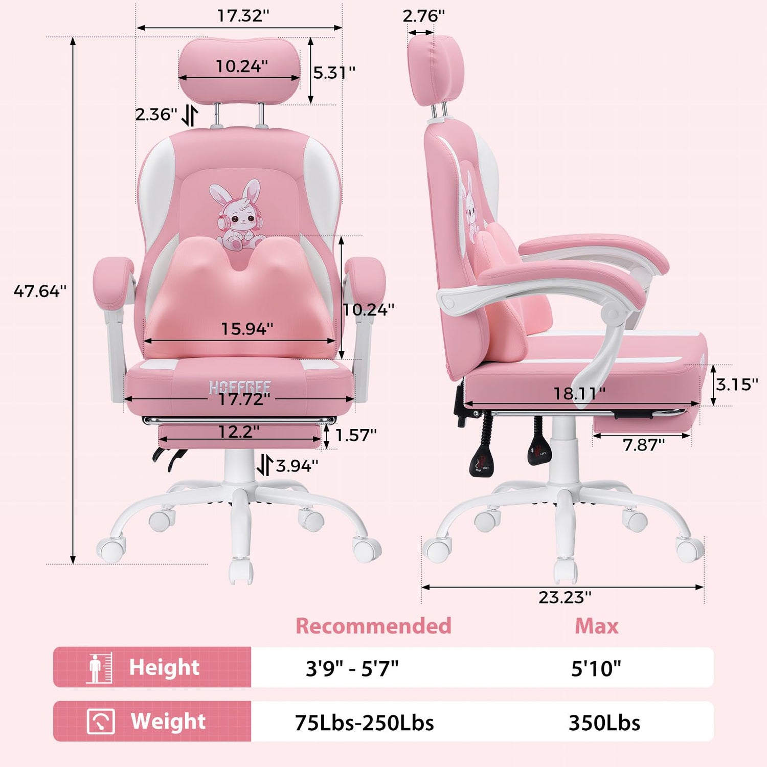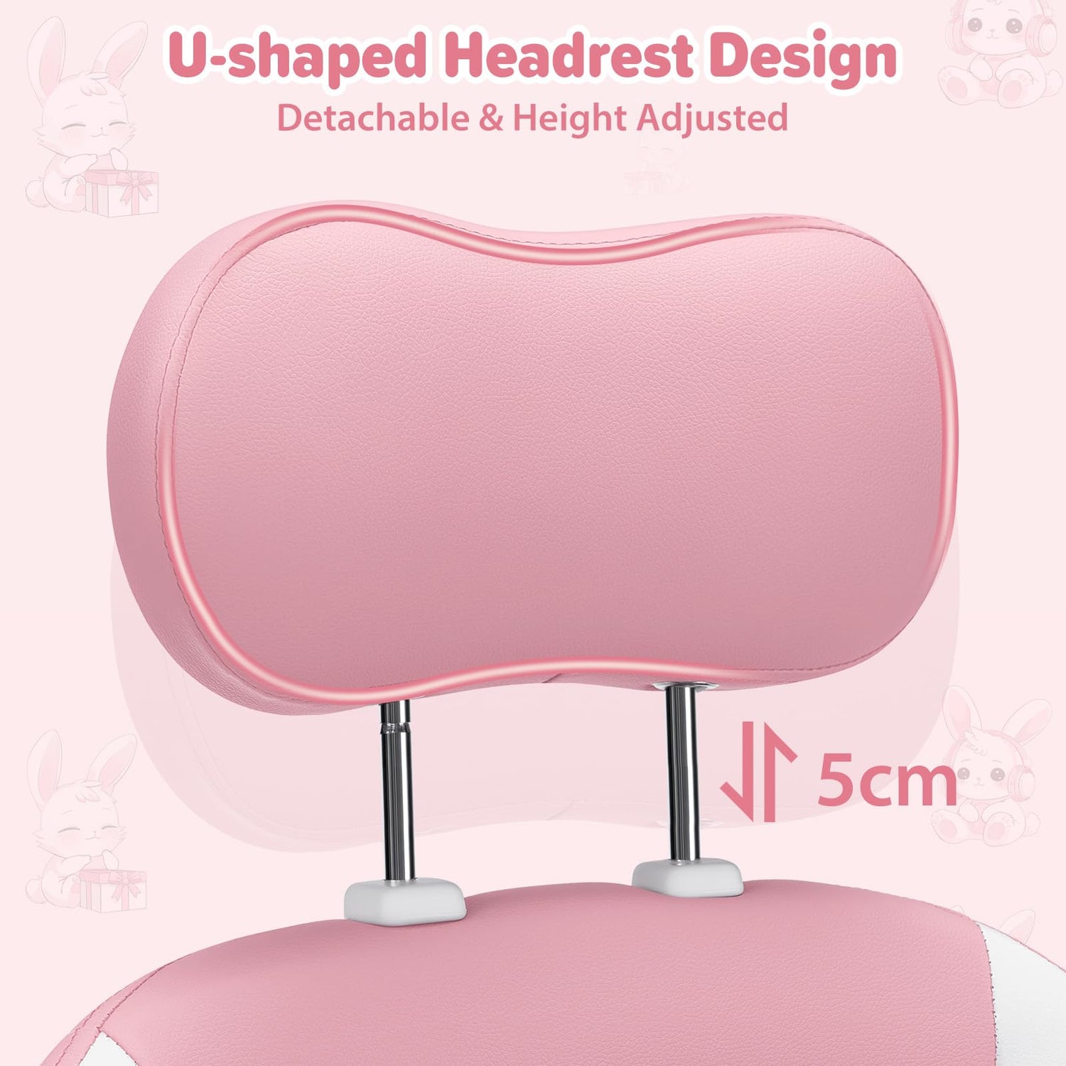 Kids Gaming Chair with Bunny Massage Lumbar Pillow - Pink Desk Chair with Adjustable Headrest & Footrest