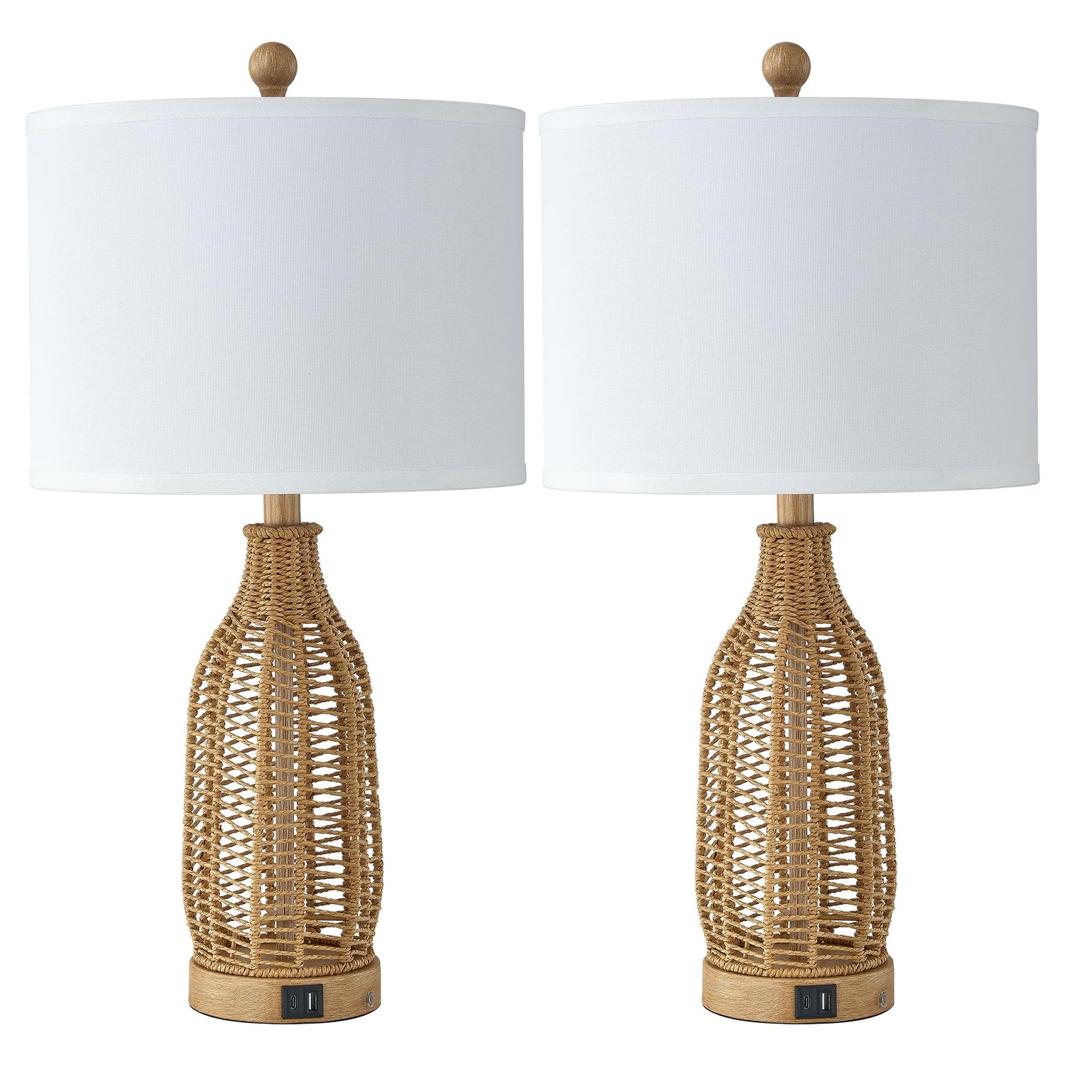 24.5" Rattan Table Lamps Set of 2 with USB Charging Ports