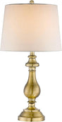 • A traditional design that offers a beautiful look for seating areas, bedrooms, and more. Antique brass finish. Metal construction. Off-white fabric drum shades. 8-foot long cords. May ship in multiple boxes and arrive at separate times.