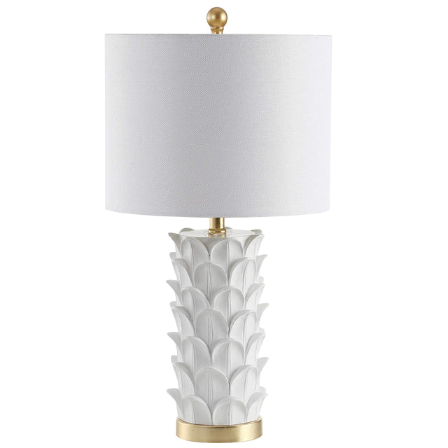 Transform your space with this captivating set of two 25-inch table lamps that blend modern sophistication with natural beauty. Featuring delicately sculpted leaves in a clean white finish complemented by a luxurious gold leaf base, these lamps serve as the perfect focal point for any living room, bedroom, home office, or study.