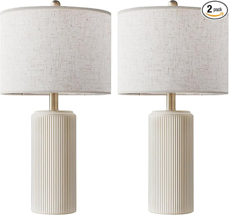 23" Ceramic Table Lamp Set of 2 - 3-Level Dimmable Farmhouse Bedside Lamps