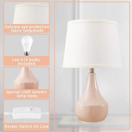 Table Lamp Set of 2, 18.63” Ceramic Table Lamp Classic Beside Lamps Nightstand
