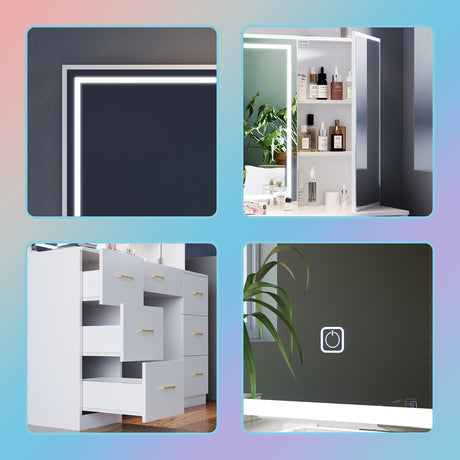Large Lighted Vanity Desk with Stool, 7 Drawers, Adjustable Lighting - For Women,