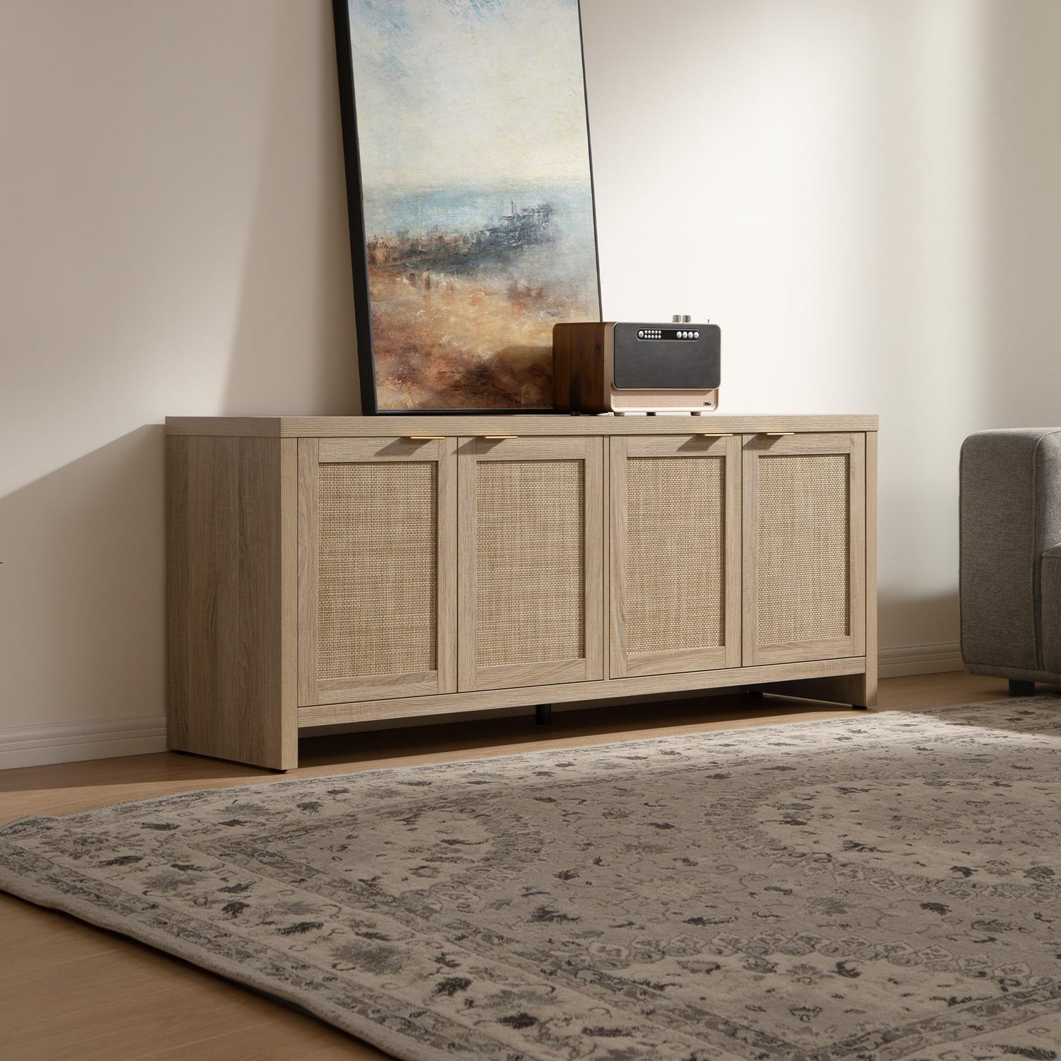 - Four rattan-front cabinets for concealed storage